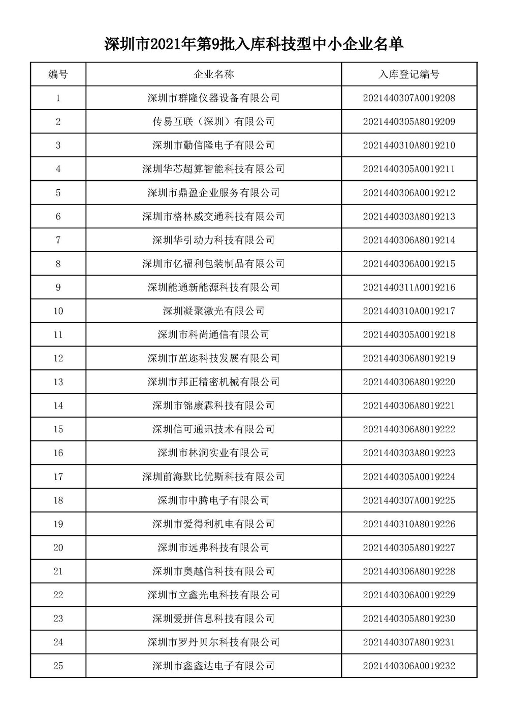 近日,深圳市科技創(chuàng)新委員會(huì)發(fā)布《深圳市2021年第九批入庫(kù)科技型中小企業(yè)名單公告》。根據(jù)《科技型中小企業(yè)評(píng)價(jià)辦法》(國(guó)科發(fā)政〔2017〕115號(hào))和《科技型中小企業(yè)評(píng)價(jià)辦法工作指引(試行)》(國(guó)科火字〔2017〕144號(hào))要求,經(jīng)公示通過(guò),現(xiàn)將深圳市2021年第九批471家入庫(kù)科技型中小企業(yè)名單予以公布。