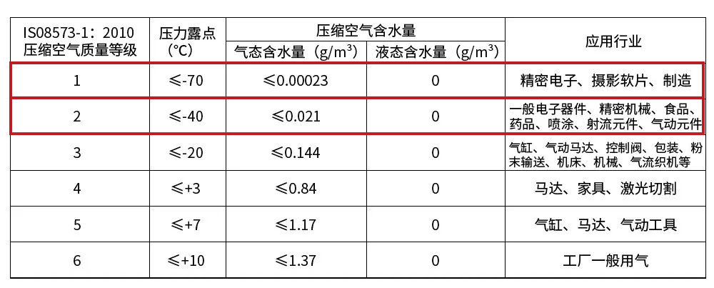 壓縮空氣品質(zhì)標(biāo)準(zhǔn):