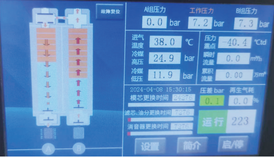 2. 后處理采用先進(jìn)穩(wěn)定可靠的國(guó)產(chǎn)設(shè)備(貝騰干燥凈化一體機(jī))實(shí)現(xiàn)了進(jìn)口替代,吸附劑使用壽命延長(zhǎng)3倍,綜合成本降低50%以上;