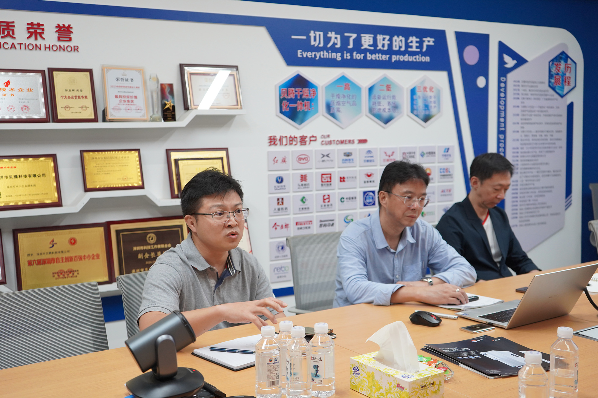 隨后,雙方進(jìn)行了座談會(huì)。會(huì)上,貝騰科技對(duì)李副局長(zhǎng)一行的到來(lái)表示熱烈歡迎,并就公司的發(fā)展歷程、業(yè)務(wù)范圍、市場(chǎng)布局以及未來(lái)規(guī)劃等方面進(jìn)行了全面介紹。貝騰科技始終堅(jiān)持以科技創(chuàng)新為驅(qū)動(dòng),致力于為客戶提供高端壓縮空氣干燥凈化設(shè)備+物聯(lián)網(wǎng)制造商,助力制造業(yè)的高質(zhì)量發(fā)展.